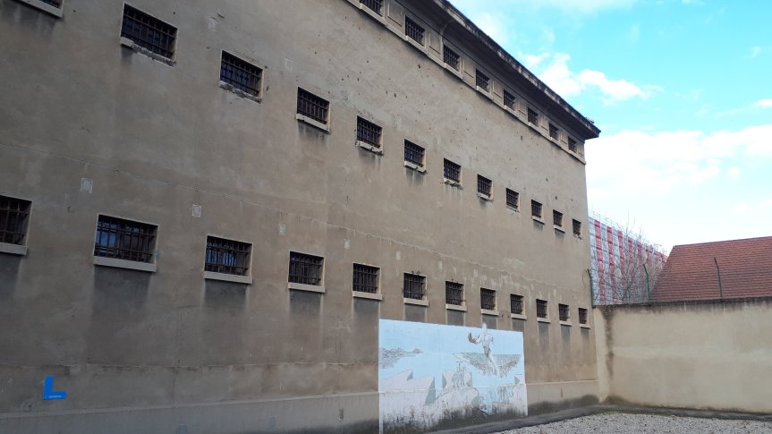 N.B. : la photo du bourreau, Klaus Barbie, est placée à l’opposé de ses victimes afin que ces dernières le regardent en face.