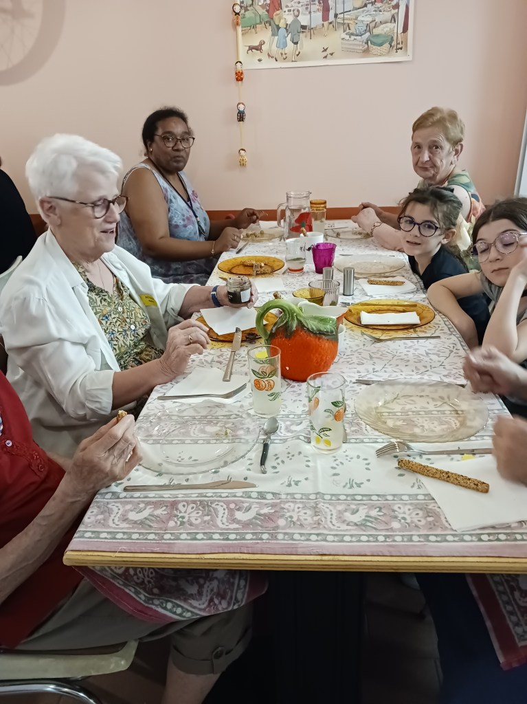 Bon moment partagé en cette fin de mois d’octobre autour d’un apéro et d’un repas espagnol concocté par le restaurant La Cantalade avec un gaspacho et une paella maison. Atelier salade de fruits de saison au GEM pour bien terminer le repas.