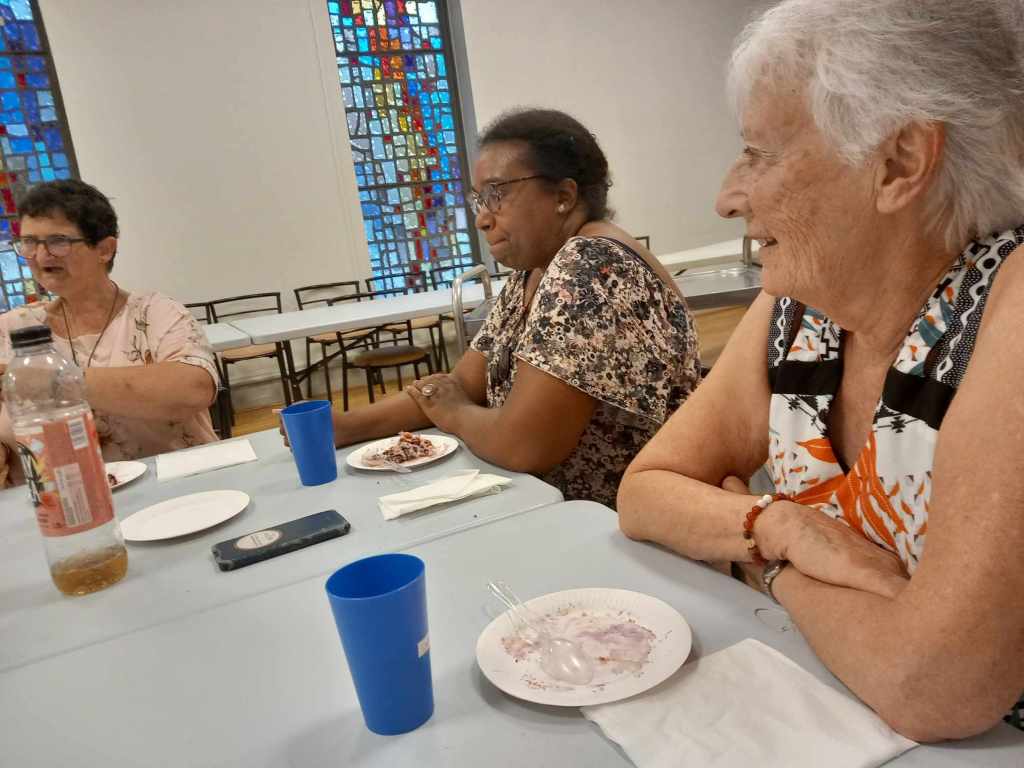 On ne se laisse pas abattre par la canicule, on utilise les salles climatisées au GEM et on prépare un repas digne d’un beau restaurant avant de le déguster ensemble en partageant un moment convivial. Le menu choisi par les adhérents : Melon et Jambon de Parme suivi d’un risotto aux quenelles et aux champignons et d’un tiramisu aux fruits rouges.
