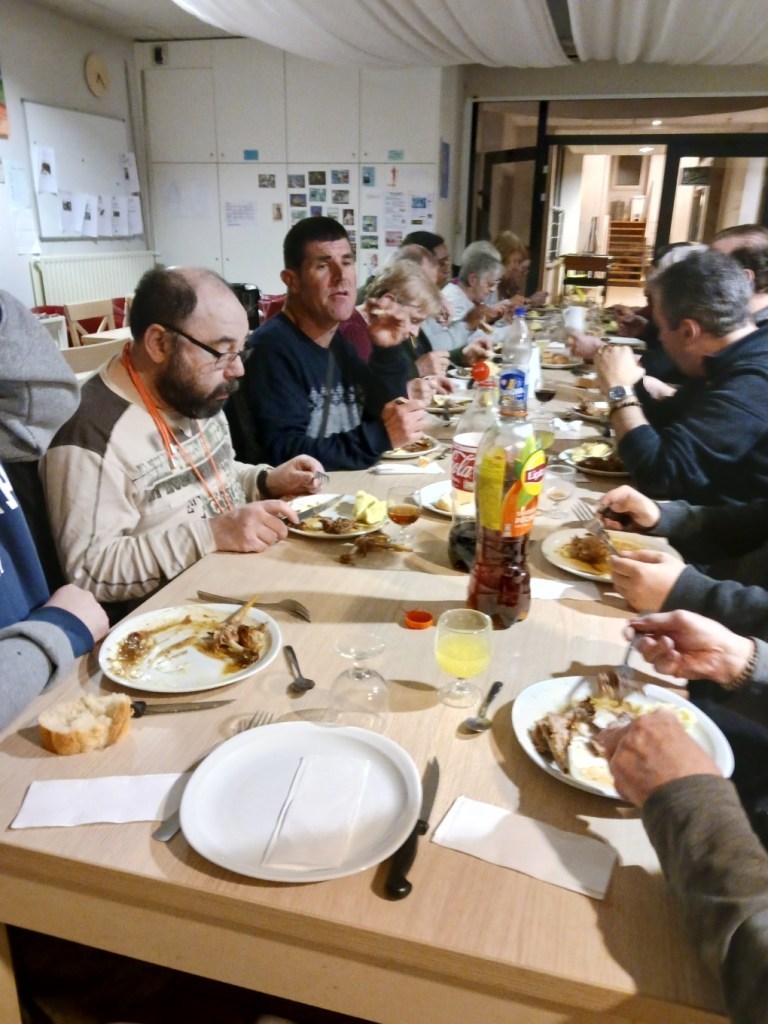 Repas partagé hier soir au GEM pour plus de 20 gemmeurs. Un groupe d’adhérents s’est occupé, l’après-midi, du dessert avec des tartes aux poires amandine au menu. Pendant ce temps, le restaurant La Cantalade 69400 de la Résidence l’Accueil à cuisiné des lasagnes excellentes. Une belle soirée au GEM, un régal.